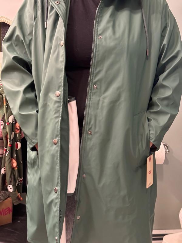 This jacket is heavier-weight, with a great quality feel without being hefty or clunky. It has a nice off-white interior lining, the outside color is a cute army green, and there are lots of pockets—which is a must have for me in any style coat! Because of the lightweight lining, it is perfect for fall and has kept me dry and warm in the colder winter month of December. I’m sure it will also be great for spring showers in 2025. I also let my best friend borrow it and she LOVED it and tried to get online and find it and buy it, but no luck! If anyone has this in 1X that they want to sell—let me know! :)