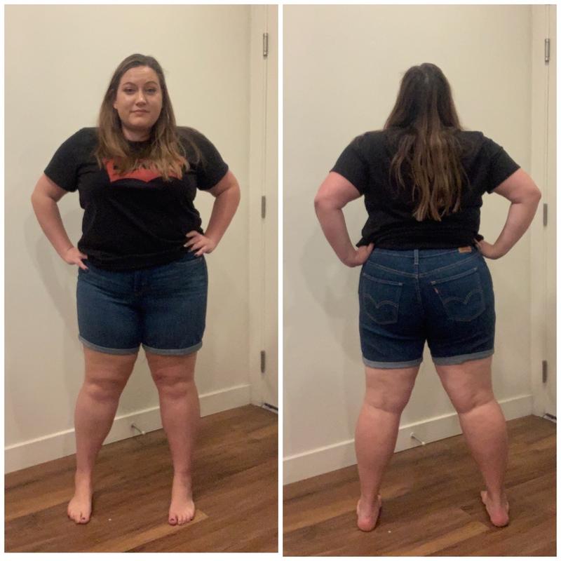 Got these shorts on sale for a great price. They have a little stretch which helps. I order a size up from my normal size since I carry weight in my butt area. I could have went with my normal size 16. They are comfortable, not too tight, and not too short. Great shorts overall.