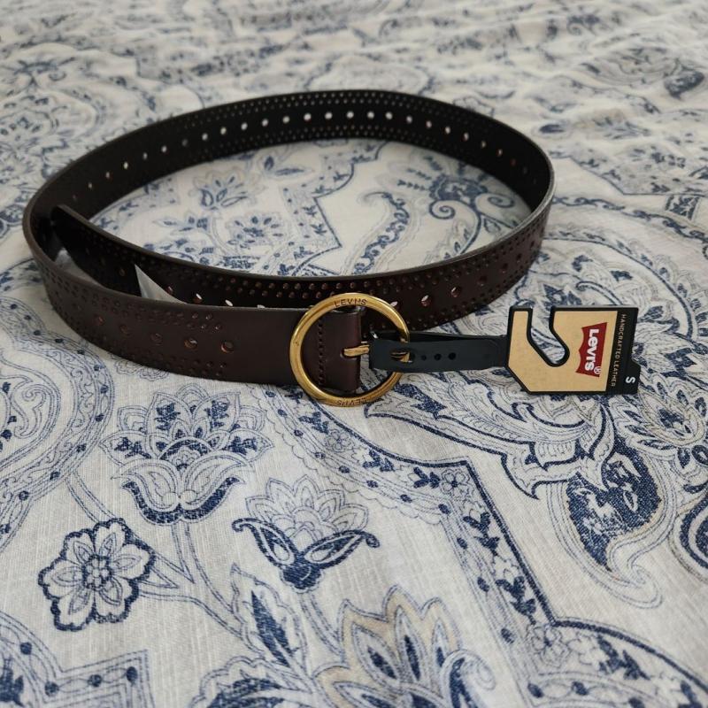 This belt appears it is made from very low quality leather. It even appears it may be made processed with scrap leather mixture and layer process then stamped out (they call it laser cut). The finish of this belt is dull and matte unlike the lustrous finish of the belt photo online. The belt is 1.375in wide. The Levis measurement guide is fairly correct. If you like the end of your belt to lie under the belt loops to the right or left of front center of your jeans I would suggest sizing up one size per the Levis belt chart. Levi's Women's Adjustable Laser Cut Leather Belt. Style no.: 13LV020026. No, I would not recommend this Levi's belt low quality will not last.
