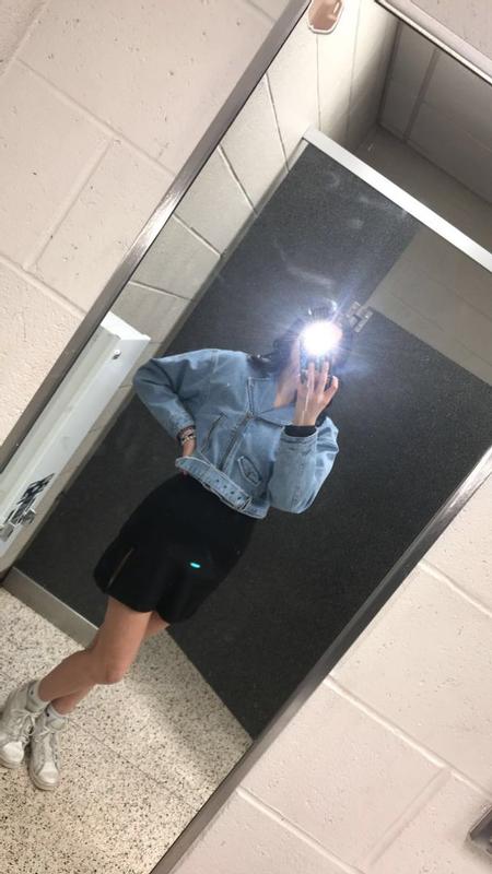 I absolutely love this denim jacket. It fits great and keeps me warm, but not too hot. It’s made of really good material and it feels amazing to wear.