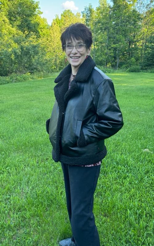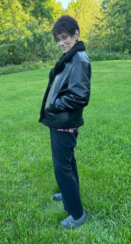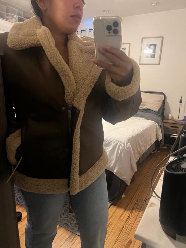 This jacket is awesome!!! It has an oversized chic look. It is very soft and warm. I can’t wait for the fall so I can wear this jacket every day! It will elevate all my looks. It’s the perfect moto jacket. The shearling is so cozy! The pockets are super functional as well. It’s a super high quality jacket and I can’t wait for the fall so I can wear it daily!!!