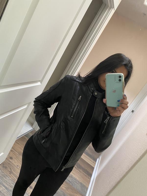 The construction of the jacket is good, and the heavyweight faux leather does not seem like it will crack or peel right away, but that's about it. The jacket has weird sizing and shaping. The shoulders are enormous and boxy, the sleeves are too wide, and the waist, although fine with a light sweater, is on the verge of being a tiny bit snug. And I say that as 5"6", 140lb, average build, hourglass shaped person in relatively good shape. I bought a size Medium and the overly roomy shoulders buckled and caved in anytime I moved my torso, which looked sloppy and unattractive. The wide sleeves made me look heavy, and I'm not sure that going down to a size Small is going to fix that. Does sleeve width significantly decrease as the overall garment size goes down? Who knows? But what I do know is that this jacket was frumpier and less attractive than all the glowing reviews made it out to be.