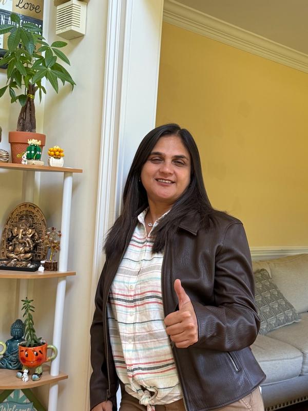 I was fearful this jacket would not fit properly. Boy was I wrong. I am 5’4” and weigh 165# and I ordered black Large. Fits perfectly but the sleeves are a bit long which is needed to bend at elbow. Material is soft and supple. It really looks like leather. Great to wear with jeans or a dress. I believe I will get a lot of use from this jacket whether dressed up or down.