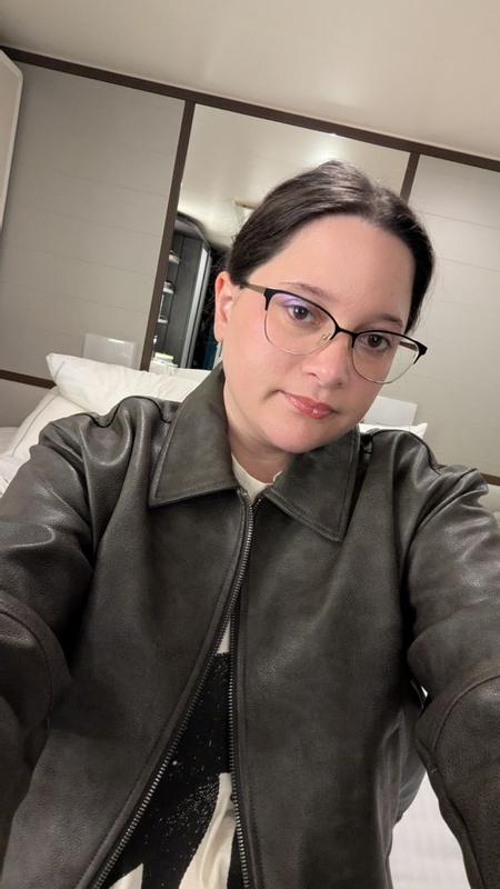 This is a great faux leather jacket as the weather starts to get colder. It does have an oversized look that can be layered over sweaters underneath. The leather material feels nice and not too fake, and it is decently warm for the fall and early winter season. There is also an optional zipper at the wrists for a more flared look. It is also machine washable which is a plus! Overall, I would recommend it if you are looking for a vegan option for a leather jacket.