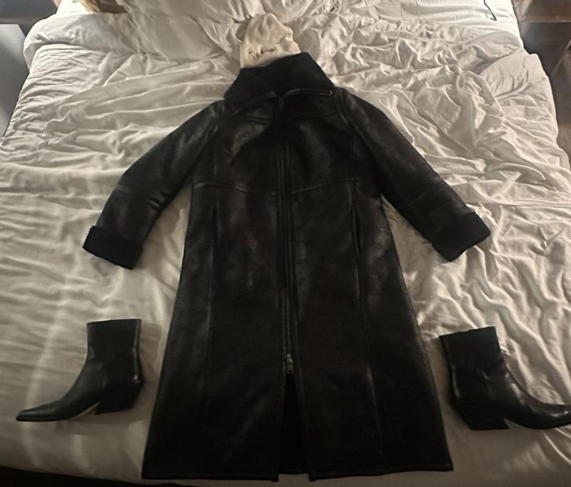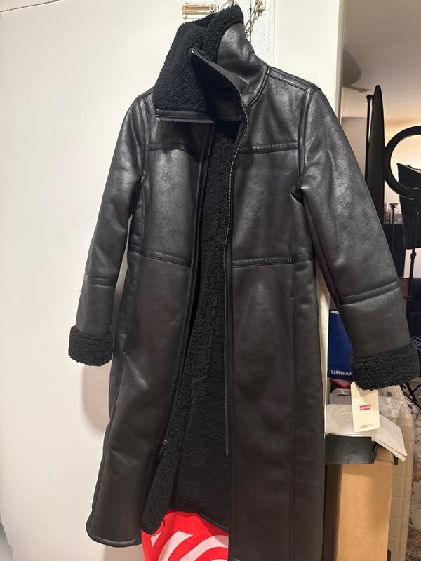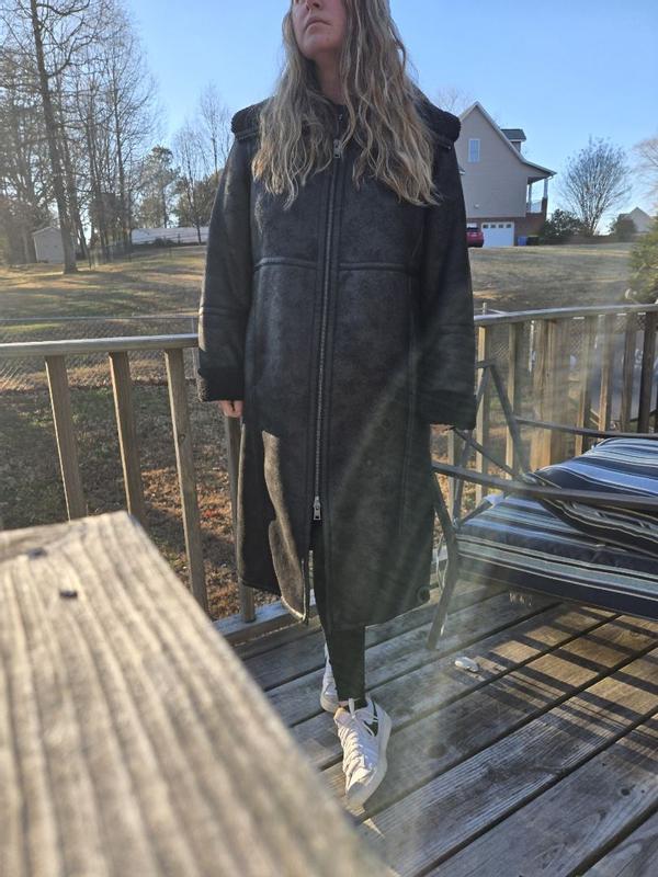 This coat is beyond gorgeous! The entire inside of the coat is lined in a soft faux shearling lining. The outside is slightly distressed like a real shearling coat. It’s so thick and beautiful no one would know it’s faux unless you told them. It’s just slightly oversized. I’m 5’ and it comes just above my ankles, so the coat isn’t dragging. I love a longer coat anyway so it’s great. This coat looks 10 times more expensive than it is! It’s warm and you can dress it up or dress it down. It’s a very modern style. From jeans or leggings to a dress, this coat goes with everything. The only thing I dislike about the coat is the zipper. Sometimes it gets stuck and is difficult to zip. Other than that, it’s a good addition to any winter wardrobe.
