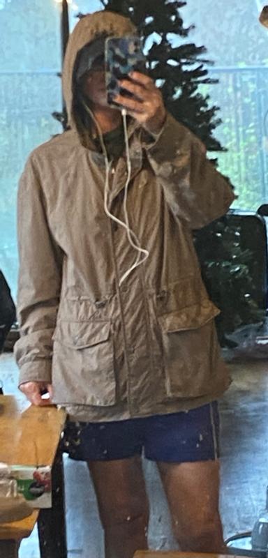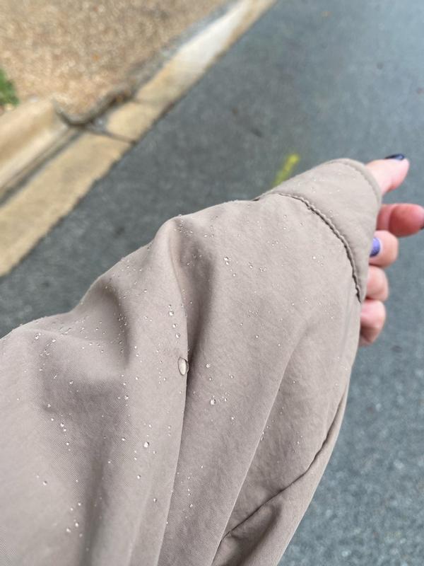 Obsessed with this jacket! I love the neutral color so I can throw it over any outfit. The cinched waist is such a nice touch and makes the fit even better! It keeps me dry when it rains if it’s not a SUPER down pour and it dries at a good speed after getting wet. I’ve gotten so many compliments on it!