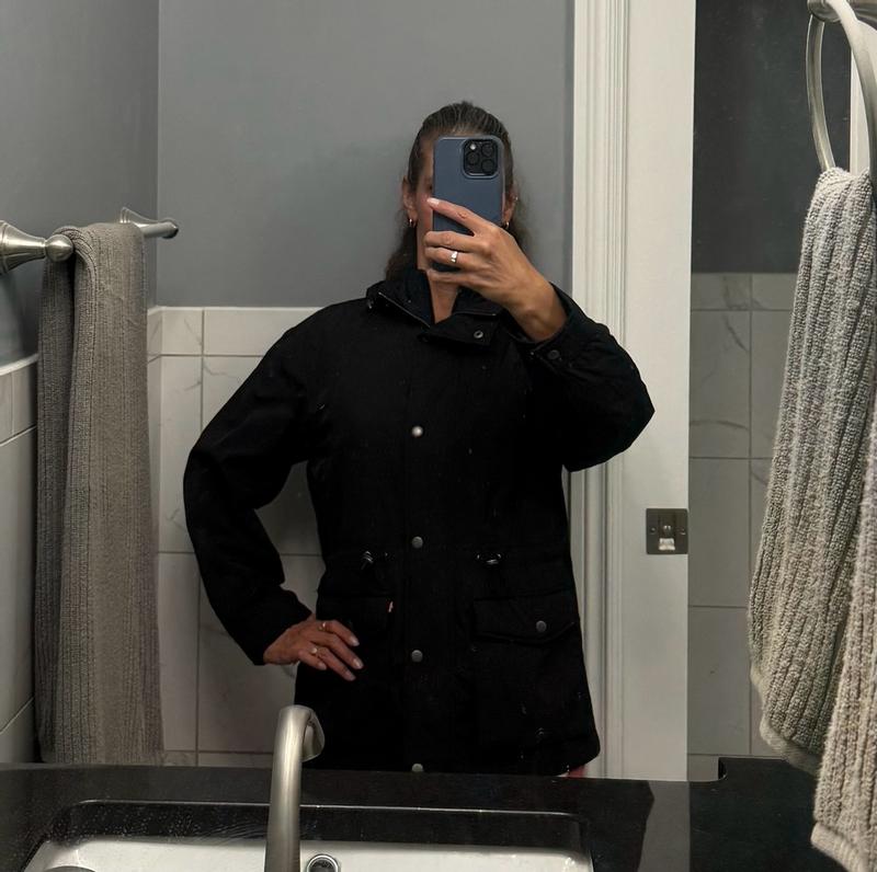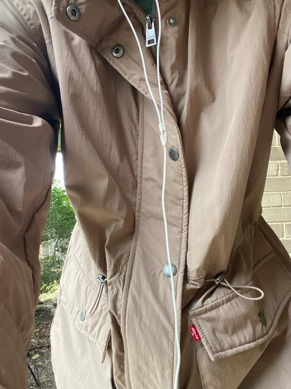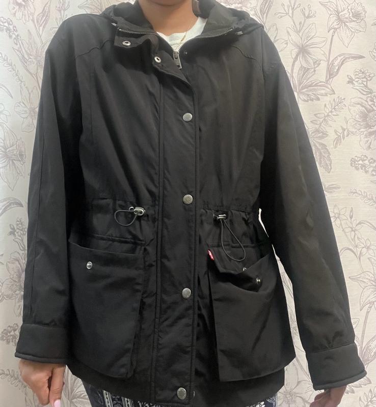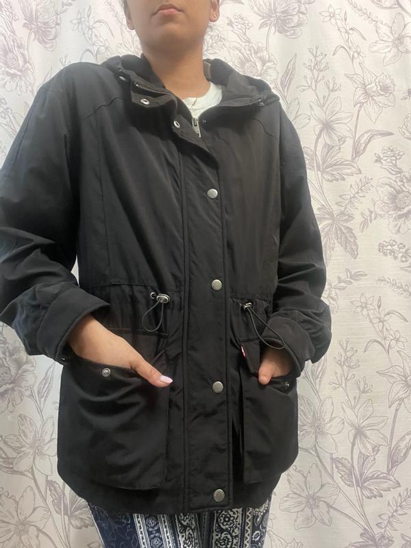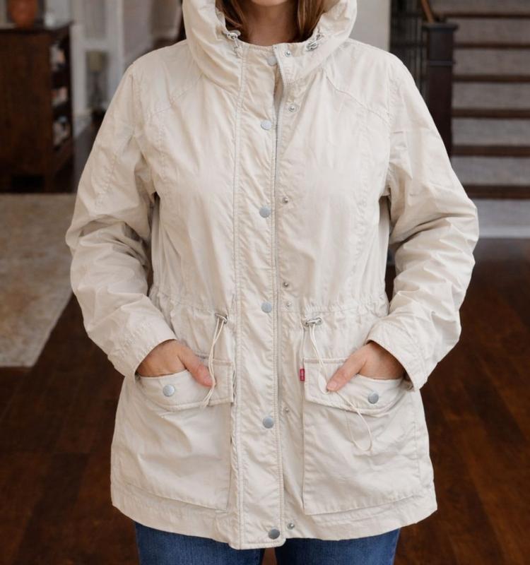 Levi Strauss and Co's cinch waist hooded anorak is a masterpiece! When I received this product, we had a bit of an arctic chill going on. I really wanted to wear it anyway and I was shocked at how warm it kept me. This product kept me warmer than some of my expensive winter coats. The insulation is incredible! From the buttons that go all of the way up, to the materials that keep you dry, to the sleek design, noting really compares. Plus it is super cute on. I do love the creation of the cinch waist, but the bungee cord has to be pinched so far to reach my waist that it looks a little odd with the cords pulled out. Still, so cute and functional, plus the pockets! I will be wearing this every day until summer hits.