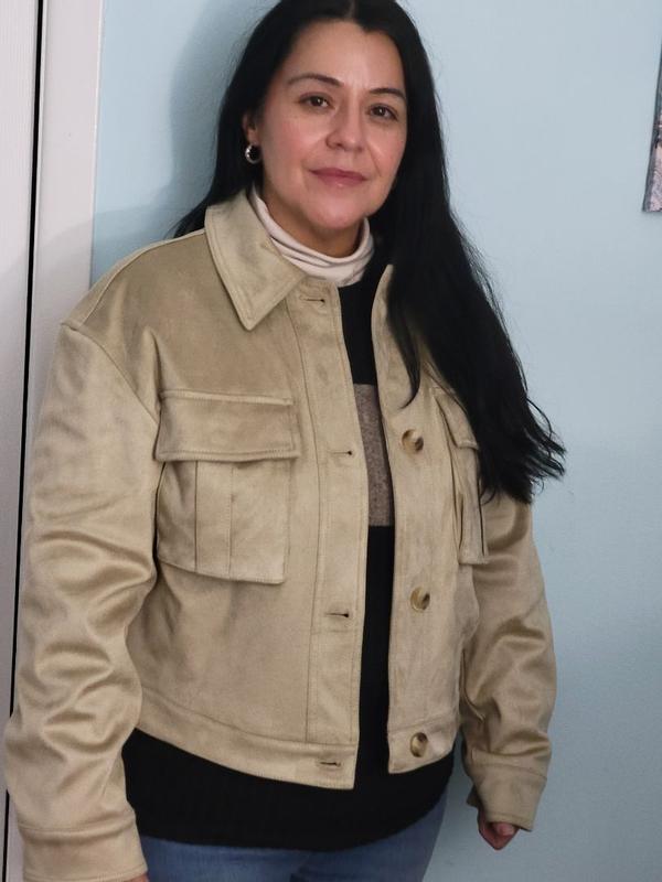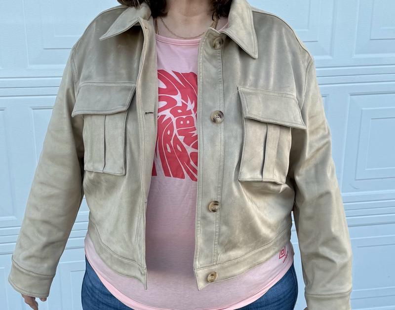 The Levi's Women's Shaket with Chest Pockets is truly a stylish design! The faux suede is buttery soft and feels delightful every time I wear it! It is so lightweight and warm at the same time! I especially love how versatile this shaket is because I find myself wearing it in a casual and dress up manner. The color (Shell) is perfection along with the beautiful deep brown buttons that give it a modern/casual feel. The snap chest pockets are beautifully stitched and lay perfectly so that they're not too bulky! The shaket falls perfectly around the waistline, which allows it to complete an effortless look. Overall, I will definitely recommend this shaket to others looking for a fashionable and comfortable feel! This shaket was designed to last forever!