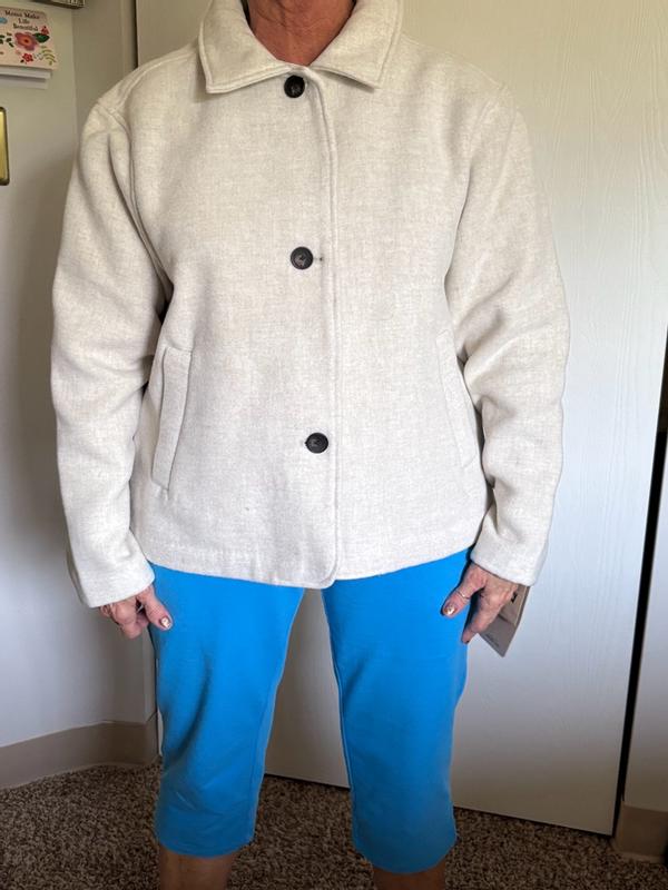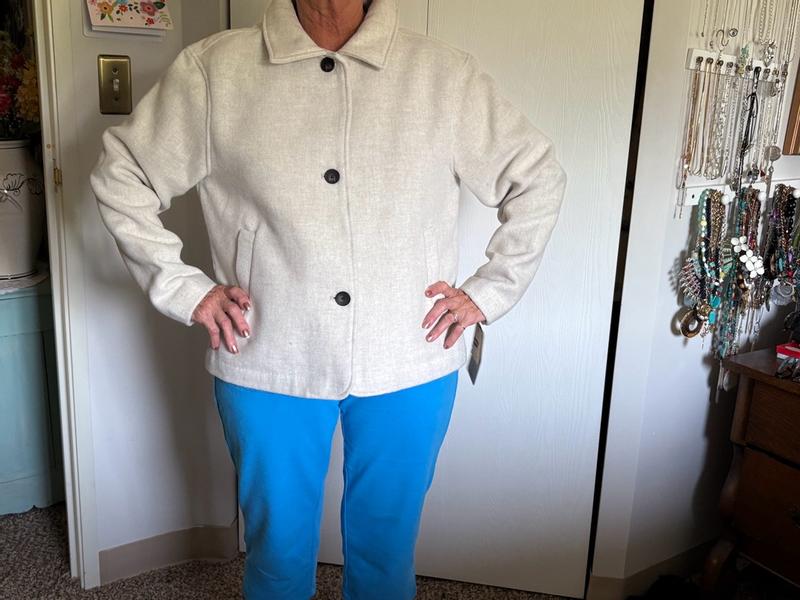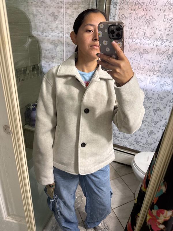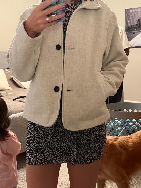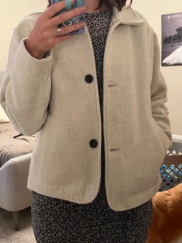 Super disappointed with this jacket. I was really excited about getting a wool blend jacket except on the tag it says it’s 100% polyester. With that aside, the jacket is comfortable and cute. It’s got a loose/more boxy fit which I have been into lately. I haven’t worn it much since it’s just now starting to cool off outside but warmth wise it’s a decent jacket for fall. My primary complaint is that it’s called a wool blend jacket and I was anticipating it to be a bit warmer and it’s not.