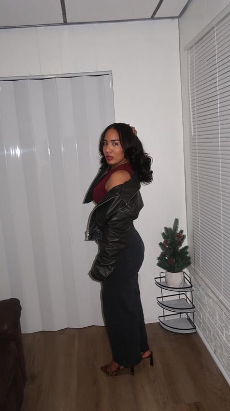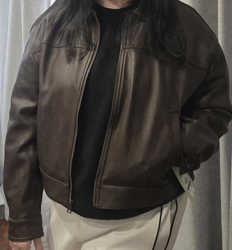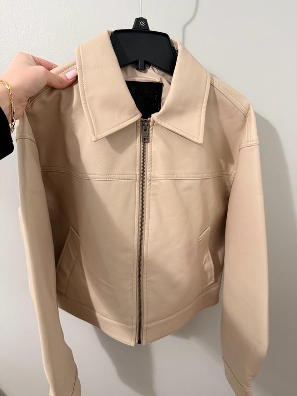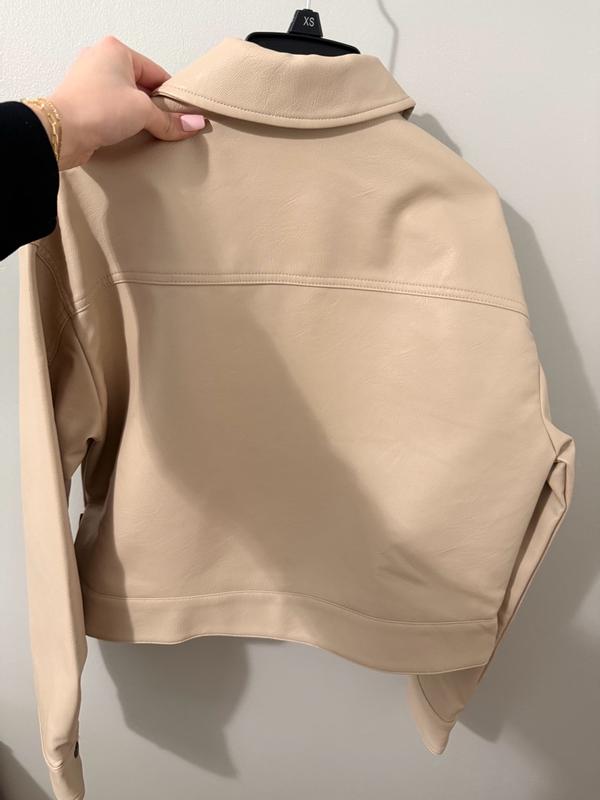 This is a good quality faux leather jacket. If you like the 90s vibe then this jacket is for you. Great for transitioning from winter to spring. I just wish the jacket was a little longer as it is just a little too cropped for me.