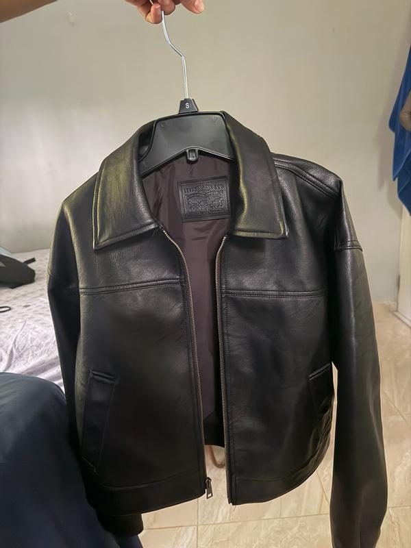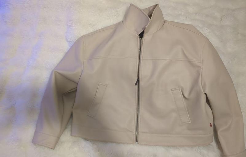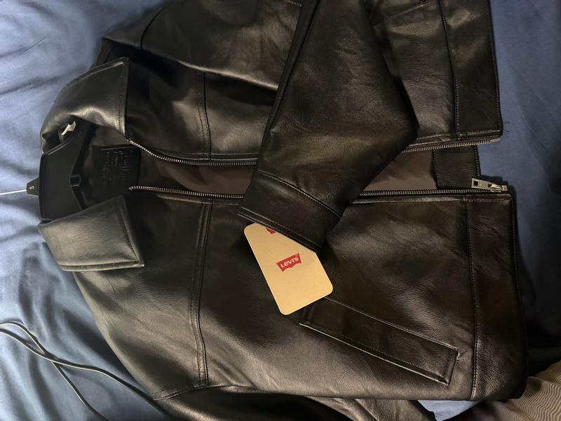 This jacket has a leather texture on the outside and a comfortable feel on the inside. The seams are nicely done. It keeps me warm against the wind. I wish it were a little longer, but it's still very beautiful. I love it very much! I'm so glad I was chosen for this Levi Strauss jacket.