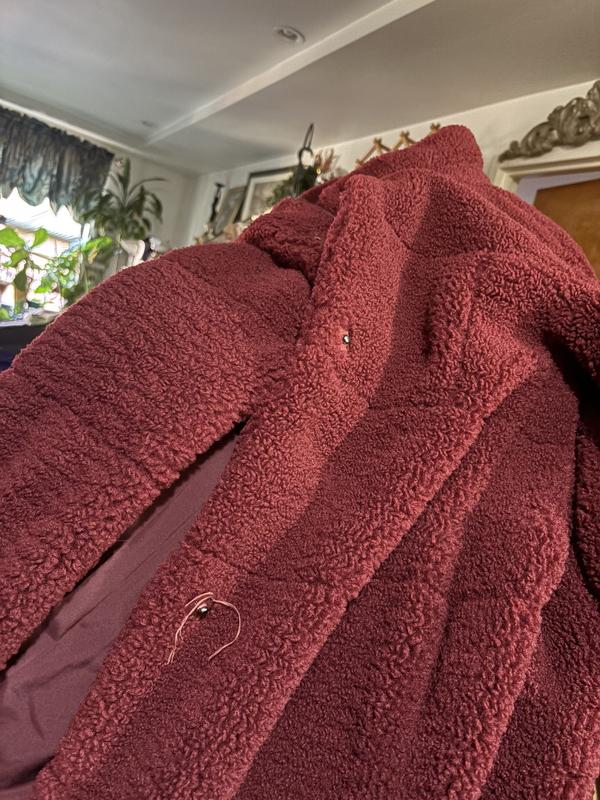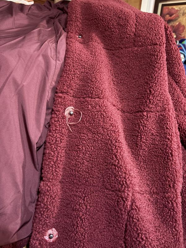 Women's Long Sherpa Snap-Closure Teddy Coat
