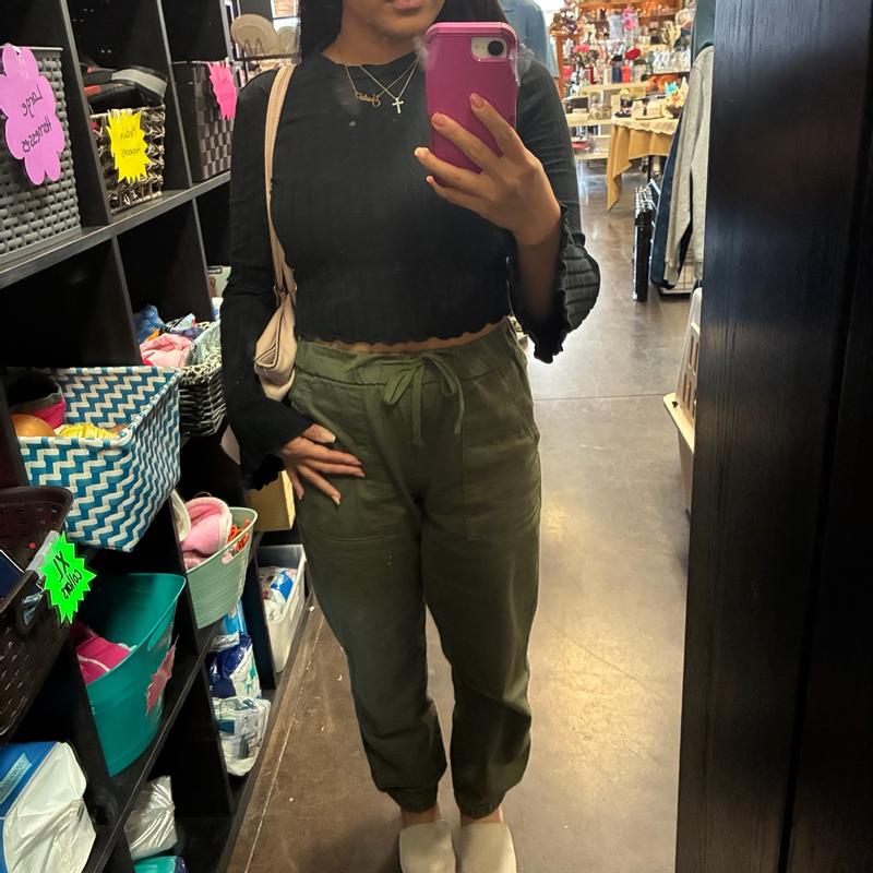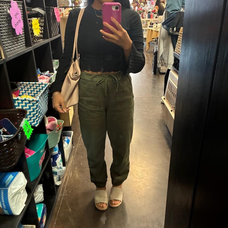 I wore these joggers out during a thrift store shopping spree and they were soooo comfy! They were perfect for <70F degree weather. Light enough that it didn’t feel heavy on but thick enough that a cold breeze didn’t bite. It also has deep enough pockets that I can fit my phone in if I was trying to not bring a bag. Overall, a good pair of pants for running errands and even just lounging at home! I fell asleep with them on and it was still comfortable.