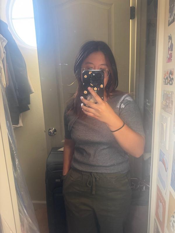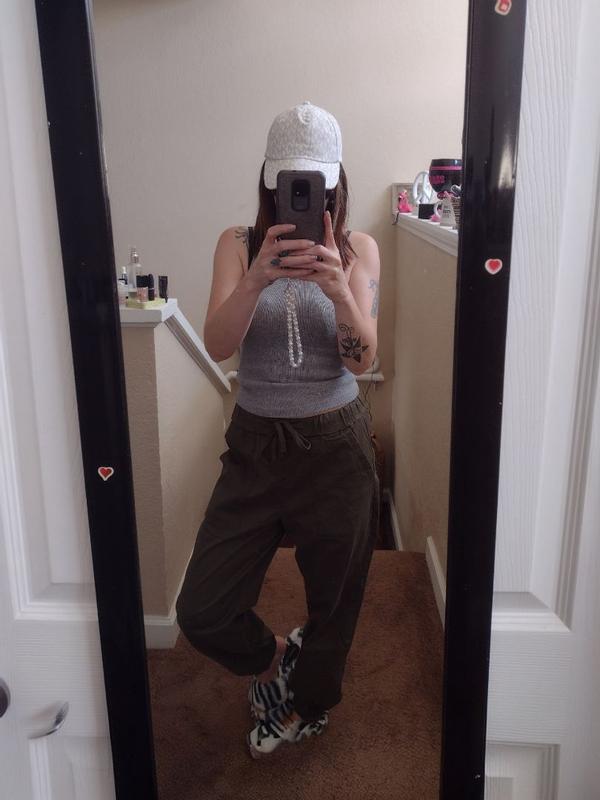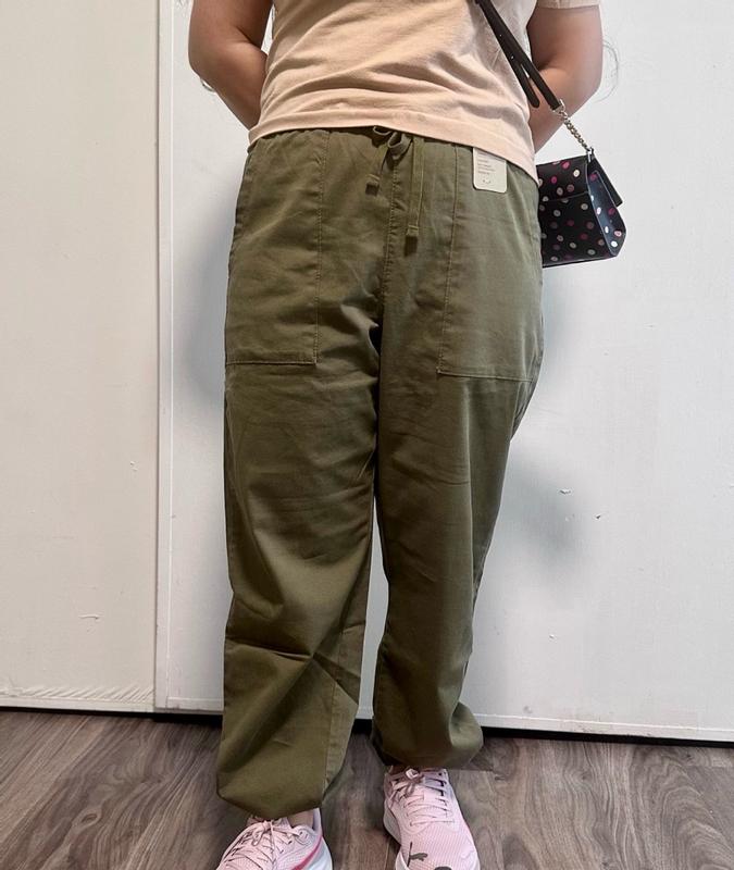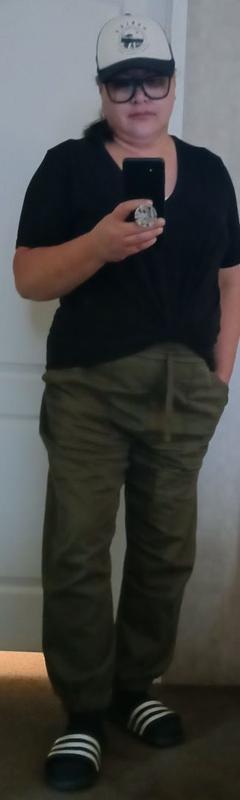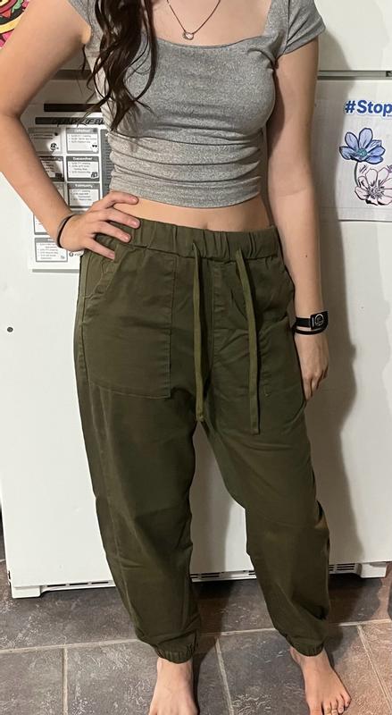 These joggers are so comfortable and cute! They look great with so many different style tops. The drawstring closure makes it easy to tighten where you want them to sit. The loose legs and tighter ankles fit great on my body shape. The pockets are very roomy making it easy to carry your phone, a small wallet, keys, etc. These are my favorite joggers from my favorite brand!