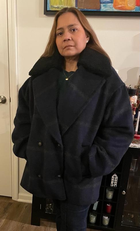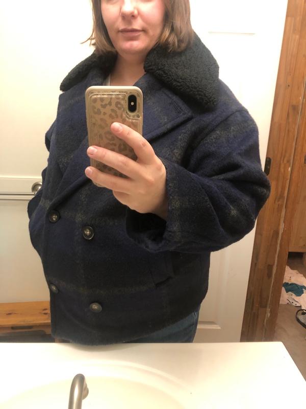 This jacket is gorgeous đ. Very warm, so soft and cozy. The sleeves are so roomy unlike other peacoats I have bought in the past. I did remove collar it looks great.