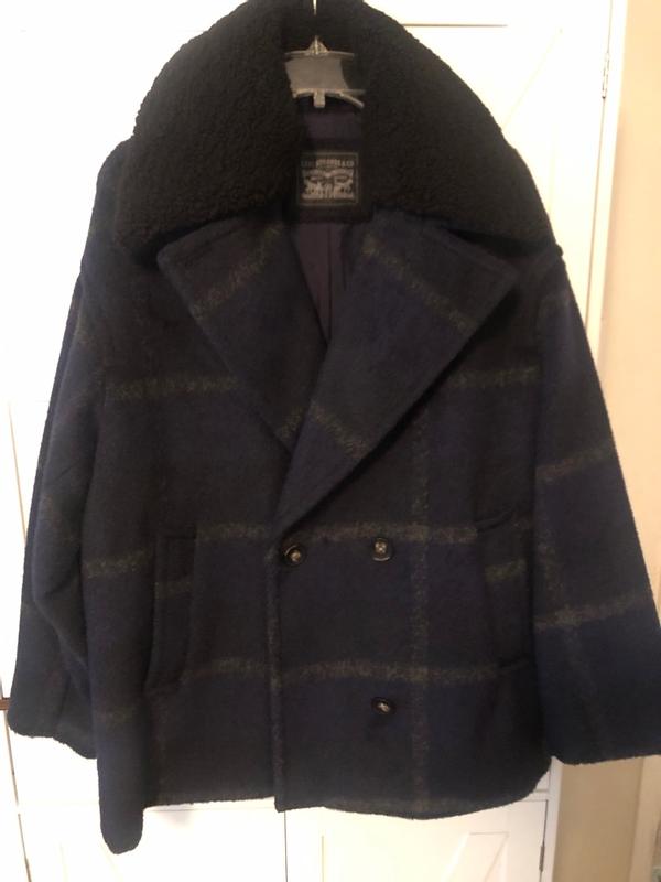 The leviâs peacoat is absolutely beautiful, itâs very well made, I love the sherpa collar because itâs so soft, makes it warm and cozy. Looks super elegant but modern at the same time, the fit is oversized but for me living in Chicago where is cold itâs perfect because I can wear bulky clothes beneath it perfectly. The dark blue color gives it an elegant look so you can dress up in it or wear it with jeans for a more casual look. I definitely recommend it to anyone who likes something warm and cozy but elegant at the same time!