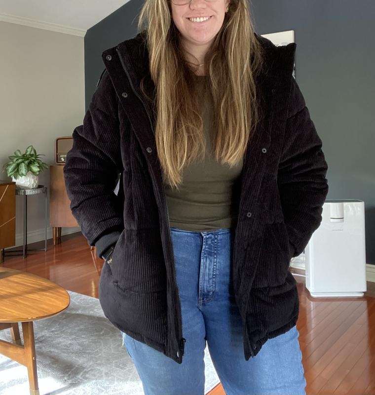 This coat is just what I needed. Some big heavy coats keep you warm but are not comfortable. This coat keeps you warm and is comfortable. I like the way it feels. I’m six months pregnant and had gotten to where none of my other coats would zip. I ordered a large in this coat and it is big enough that I can zip it easily.