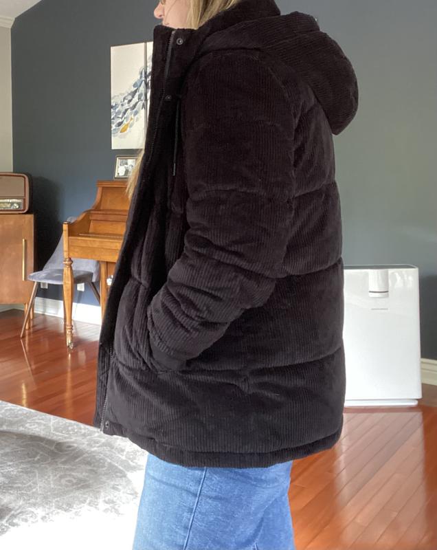 Women's Quilted Hooded Corduroy Puffer Jacket