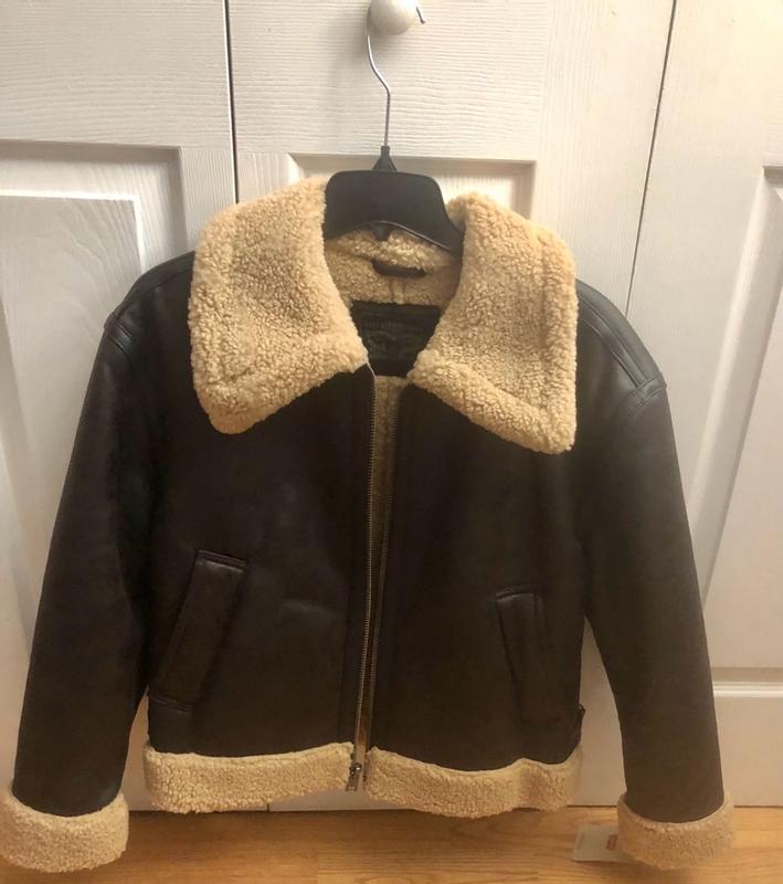 This coat has a quality leather look and is fully lined with Sherpa making it a perfect choice for the cooler days of fall. It’s got a standard fit to it which makes it comfortable. I will say that I felt that the shoulders were a bit snug when moving so I would recommend sizing up if you want to wear thicker sweaters underneath.