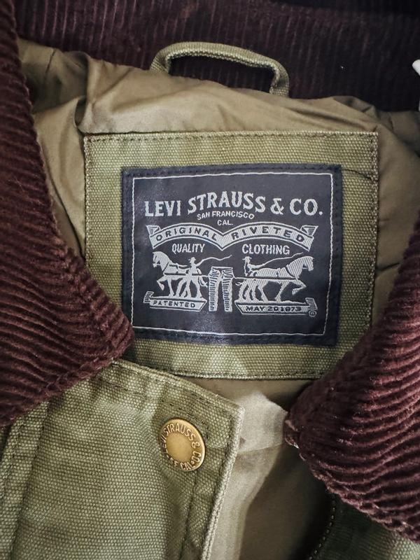 Levi Strauss & Co. has been making quality clothing for years, and this cool jacket is no exception. The fine details such as side and front pockets that can hold your phone and other things are deep, and the stitching, coupled with the rivets and quality of the fabric, make this jacket one that will withstand a lot of use for many years. The shade of green will pare with many colors, and my choice was to match it with camo green pants and a brown shirt, which blends nicely with the rich chocolate collar. The style is classic and timeless! The fit is a bit boxy, and roomy enough to have a sweater underneath. I also think the style could be unisex. A great find!