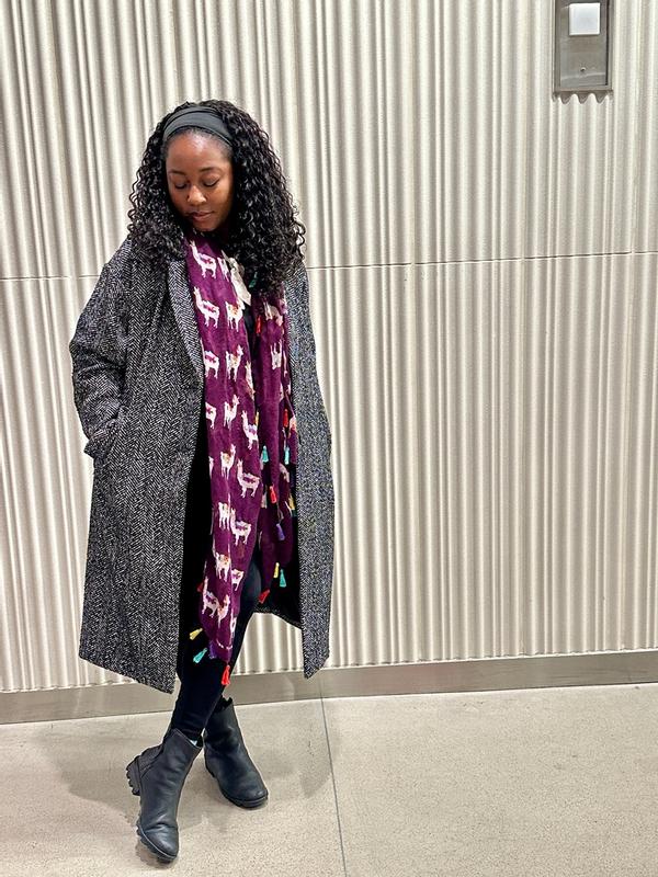 This Levi’s coat is the perfect investment piece for winter outerwear. The black and white houndstooth pattern is classic and will always be in style. I love the long length of this jacket. It will shield you from the cold and wind. It has a durable inner lining with an inner pocket. The outer pockets are spacious too. The fit is true to size and roomy enough for me to wear over my bulky sweaters and sweatshirts. This is a beautiful piece of my wardrobe!