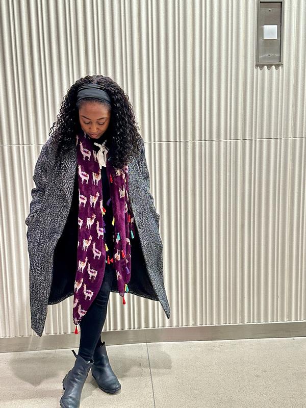 I’m 5’2” which means long coats like these typically don’t work for me. When I first tried it on I wasn’t sure about it as it made me look exactly like I thought it would…short lol. I did some thinking and styled it a bit by using some bulkier pieces under it (sweatshirt/sneakers) and I think that’s the only way it will work for me. In all it’s a nice coat, not something I would wear on really cold days without a lot of layering. It has nice large pockets that will fit your phone if your running out quickly and don’t want to carry a purse. It is prone to creasing if stored improperly, but nothing crazy that doesn’t come out fairly easy throughout the day.