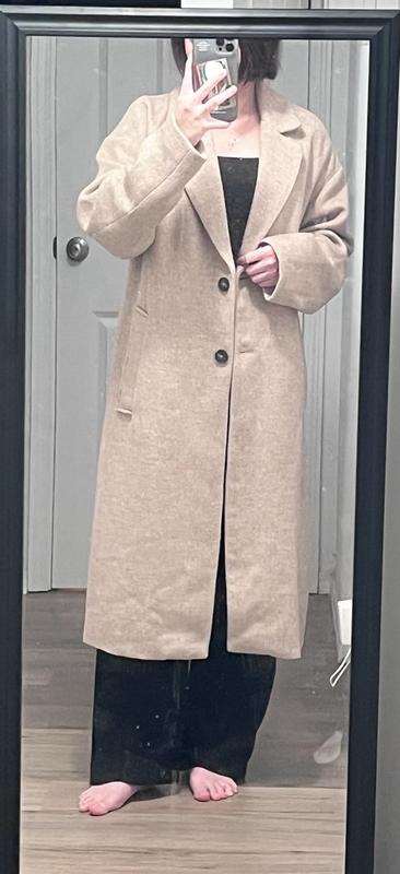 This coat fits exactly how I hoped it would. The size feels perfect, not too tight and not too roomy, so it looks polished while still being comfortable. Even better, it’s not heavy at all, which makes it easy to wear all day without feeling weighed down. I’ve always wanted a long coat like this in my wardrobe, and this one feels like a perfect staple. It’s simple, timeless, and something I know I’ll reach for often during cooler days.