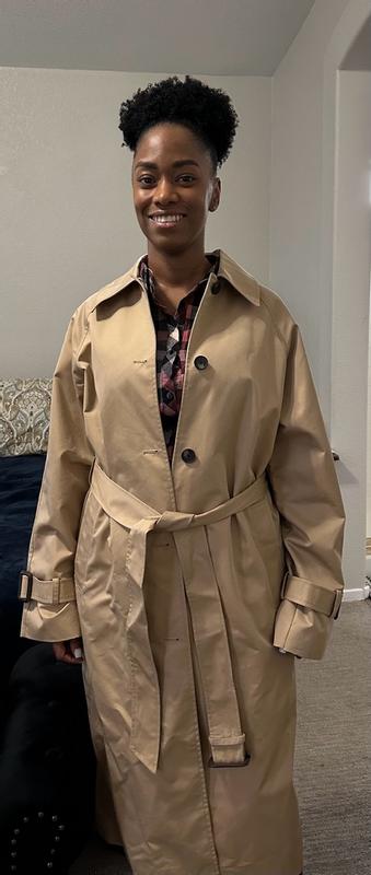 I absolutely love this trench coat. The material is nice and the fit looks great. It’s just the right color and I love the buttons and belt. I’m looking forward to rocking it this winter!