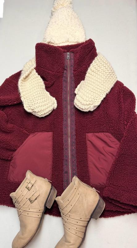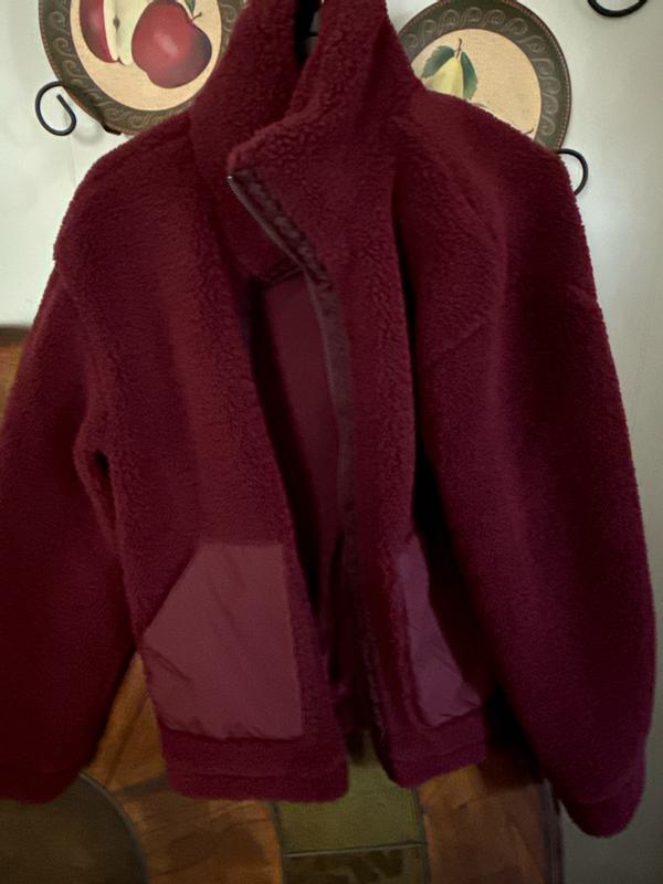 You can tell this jacket was really well made, it’s thick and has substantial weight for a teddy jacket. I was worried it wouldn’t be warm in Wisconsin, but it’s lined nicely and held in a substantial amount of heat. The zipper is easy to tug up and down which might sound silly until you’re wearing gloves and trying to get your coat zipped, I love a smooth zipper on a winter jacket. The details on the coat are adorable and I get lots of compliments when wearing it. I love that it came in a color other than white, cream or black because this burgundy color is so vibrant and fun. My only wish for this coat was that it was a little longer. It hits right at my hip bones and doesn’t cover any of my bum. I don’t need a long coat in the winter, but I do like it go longer than this. When you bed over or get in the car, it rides up a bit and the cold air hits my back. I’m incredibly long in the torso so it might be a me issue, but if you like a coat that rides a little lower in the winter, I suggest trying this one on before purchasing. Overall I’m still very happy and would recommend this coat, it’s perfect for running a quick errand or grabbing the kids off the bus. The big pockets in the front are perfect for my keys and wallet and alleviate the need for my purse.
