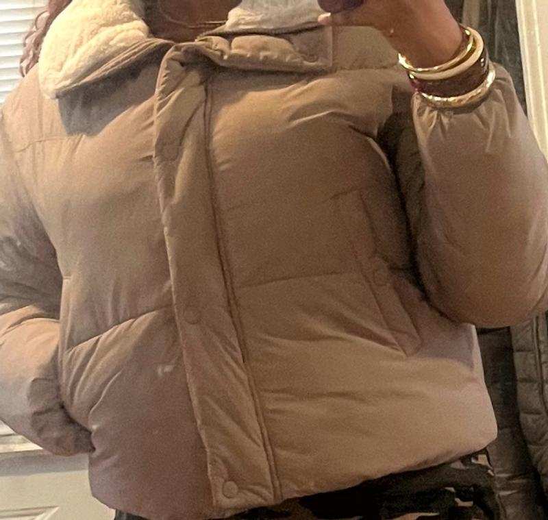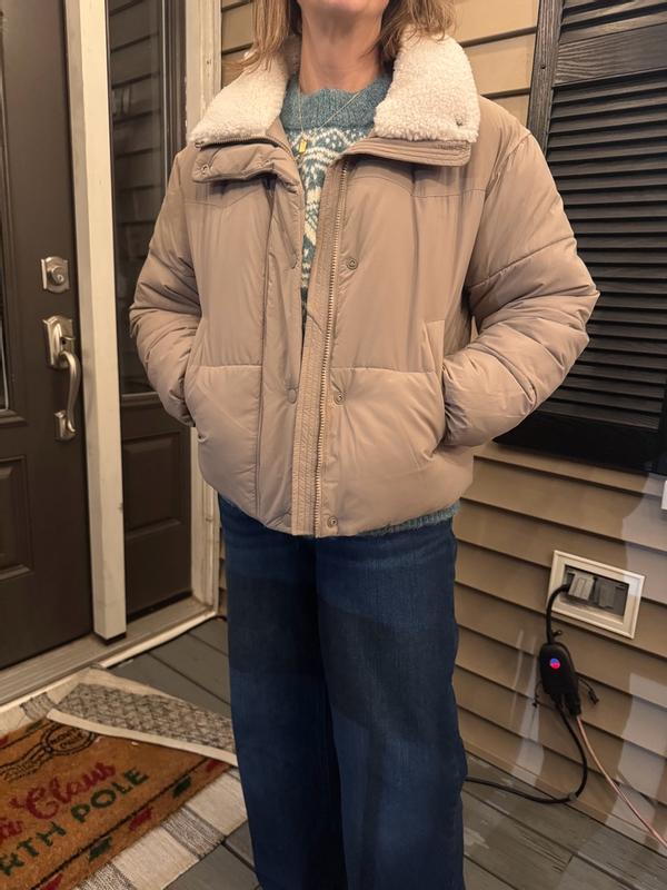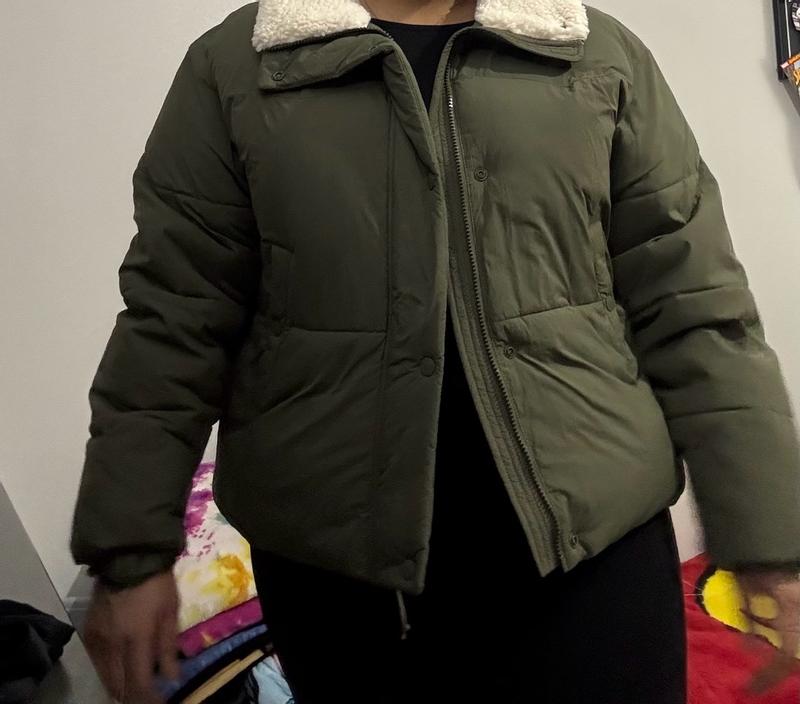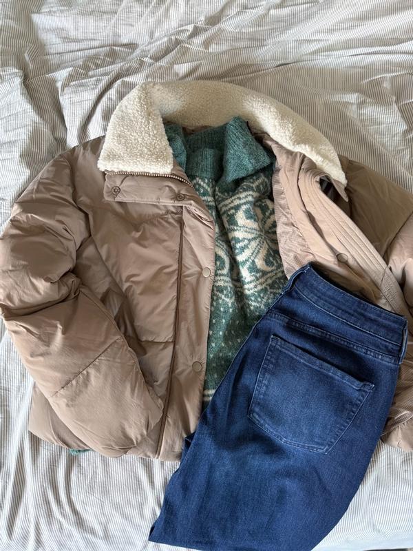 I love how comfortable the puffer jacket is. And it fits perfectly with enough room to wear over a light jacket underneath. It has pockets and perfect to put your cellphone, keys, or small wallet.