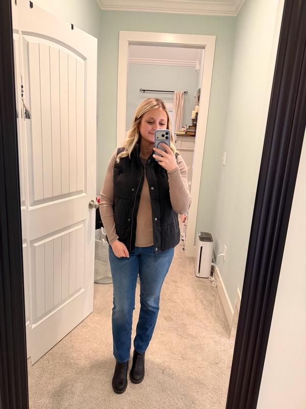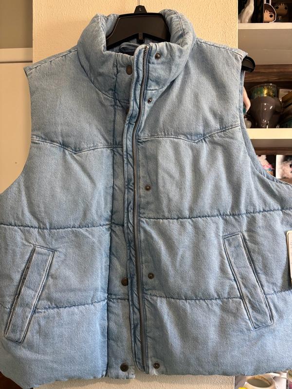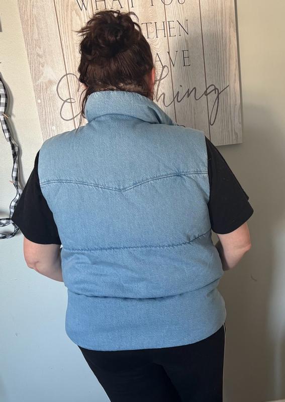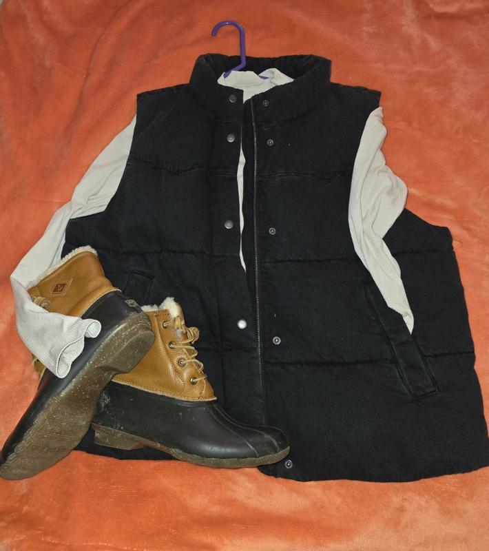 I love this Levi’s brand puffer denim vest! It’s so cute and versatile. You can wear it with jeans, leggings, dresses and more. It is very thick and warm. I feel like the collar could have been a bit shorter but it still looks good. It’s very durable and the zipper seems very sturdy. I like that it has snaps over the zipper as well. It has nice deep pockets which I love!