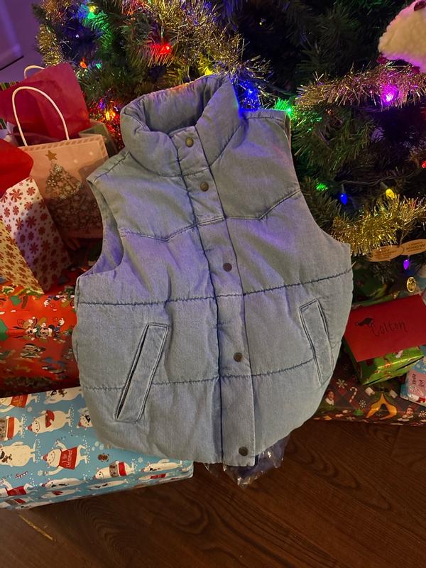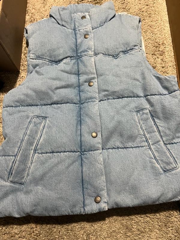 That’s the best is really cute! I love the denim like print of it. It is a little oversized, but not too oversized. If you don’t want two size up or size down it’s the perfect level of puff that a vest means.