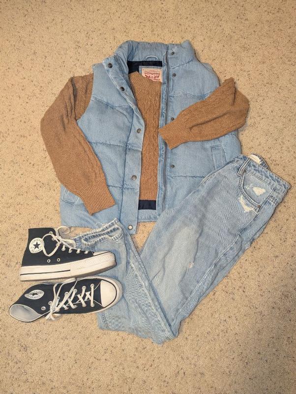 I like this puffer vest. The denim look gives it a timeless, casual style that pairs effortlessly with sweaters, hoodies, or long sleeves, while still feeling polished. It’s lightweight but warm enough for cooler days, making it perfect for layering without feeling bulky or restrictive.