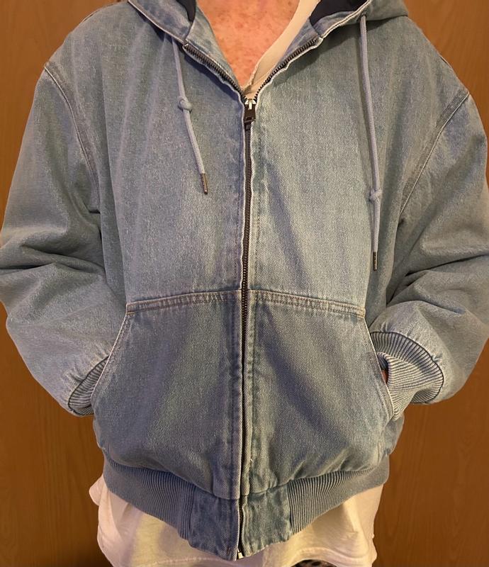 This “hoodie” is more of a jacket. It’s super cozy and warm. The material is thick and durable. I absolutely love it. Can’t wait to wear it around during the springtime. This jacket reminds me of the one my dad let me wear when I took care of horses back in high school, and now I have my own. I also love the hood as it helps keep the wind off. It zips up easily and fits me perfectly, although it would be a little tight if I had on thick clothing underneath. Overall I highly recommended this jacket.