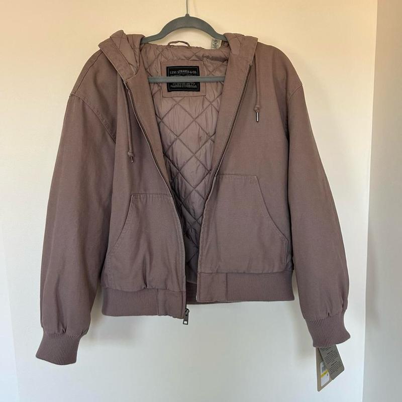 This jacket is really REALLY soft and comfortable but does not skim on the warmth. In the past when I've gotten a men's Levi's outdoor workwear, the fit is always a bit too bulky no matter what the size. The women's fit is very warm and comfortable but also a bit flattering. Not sure what this color is called in Levi lingo but it's kind of like a mauve. I really like it. It's just a hint of color on the tan workwear type style but not so much color that it's a distraction. The hood is quilt lined also and is fits great. I wear a thick hoodie or crew neck or sometimes just a thin wool sweater under it so I stay warm without feeling bulky and can always take the under layer off. I like that the jacket hits right above the hips. That is a flattering cut. I've washed it only once so far but there was no shrinkage and the two small "stains" came out pretty well. I thought at first I'd have to handwash but took a chance and it stayed the same size. This is a great product.