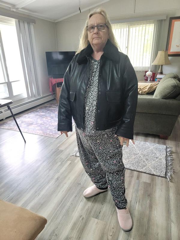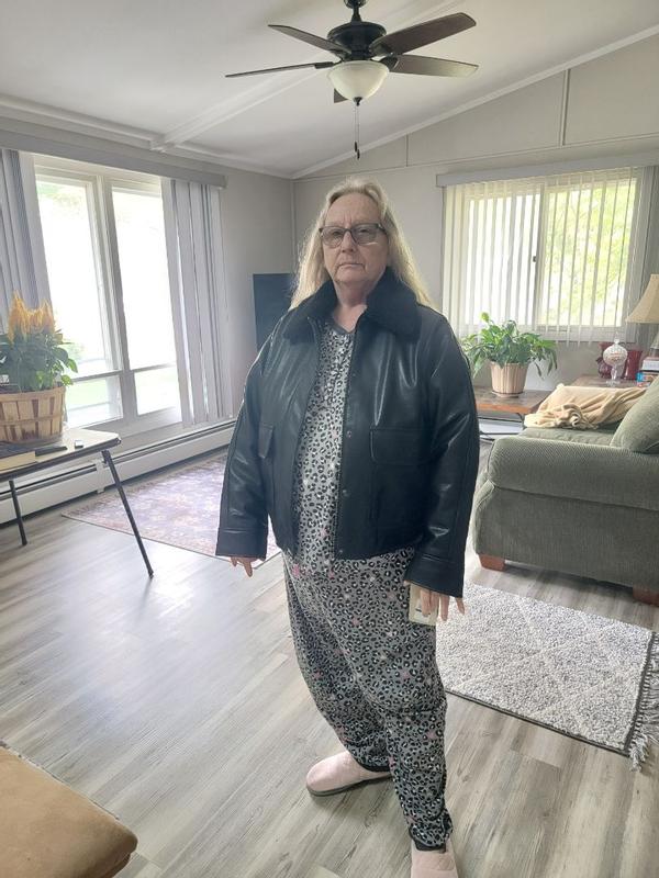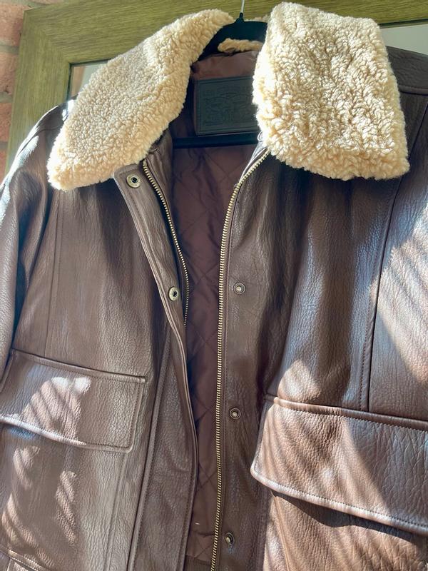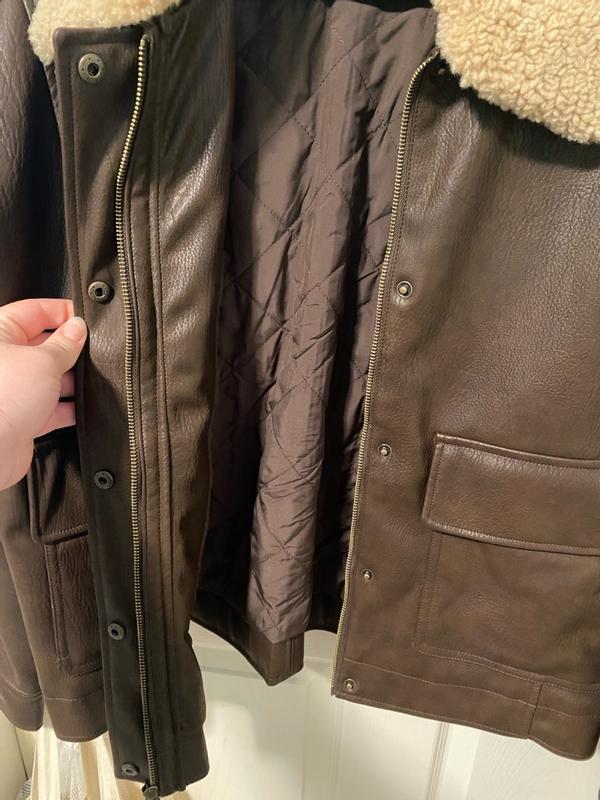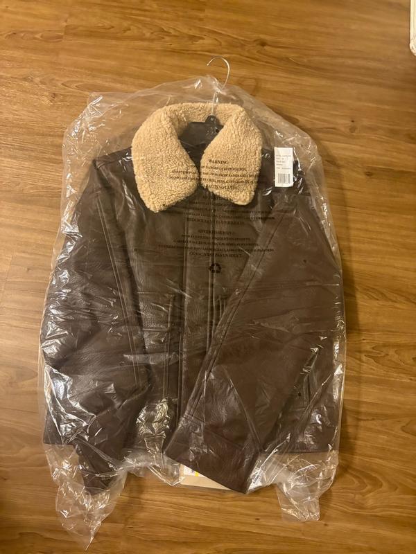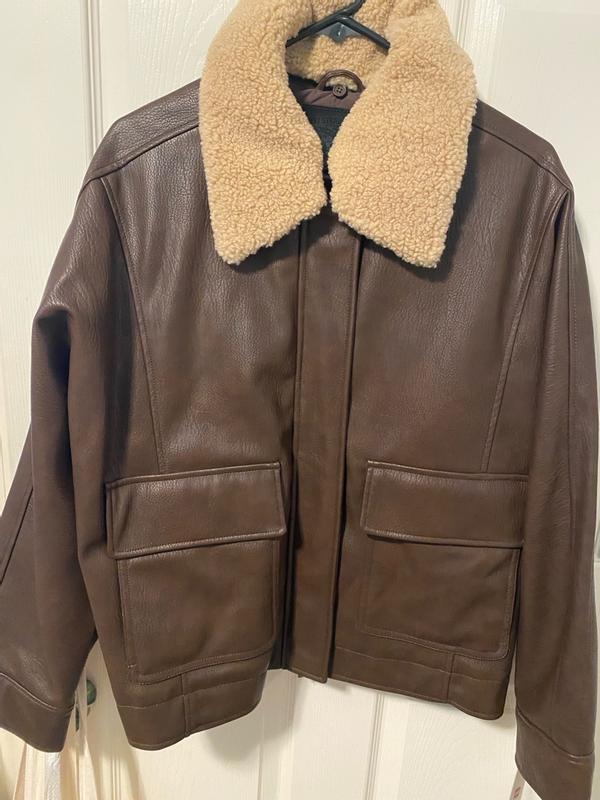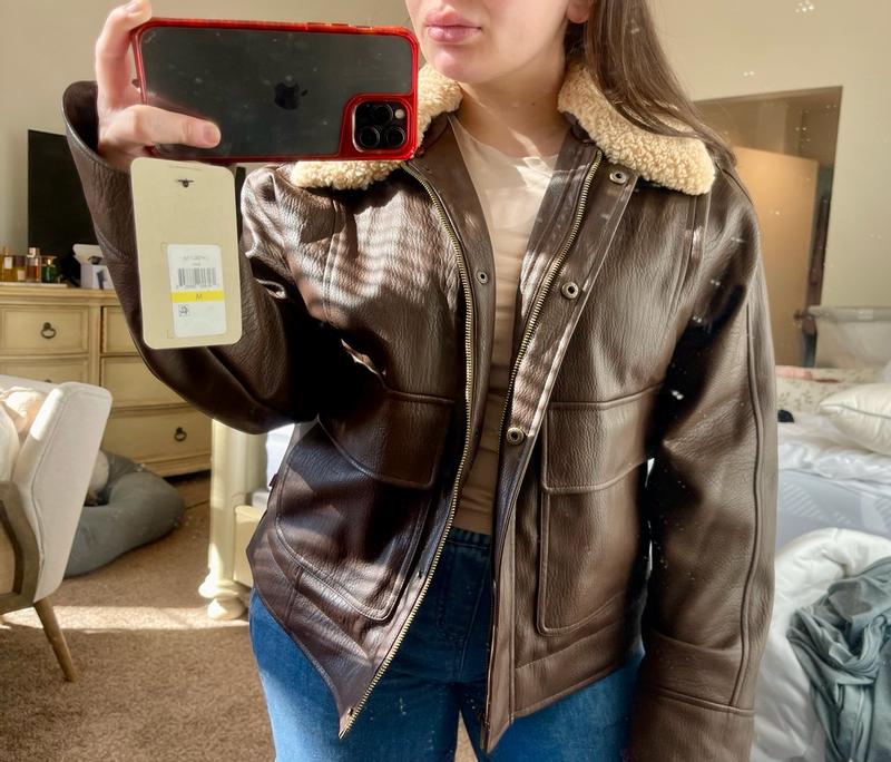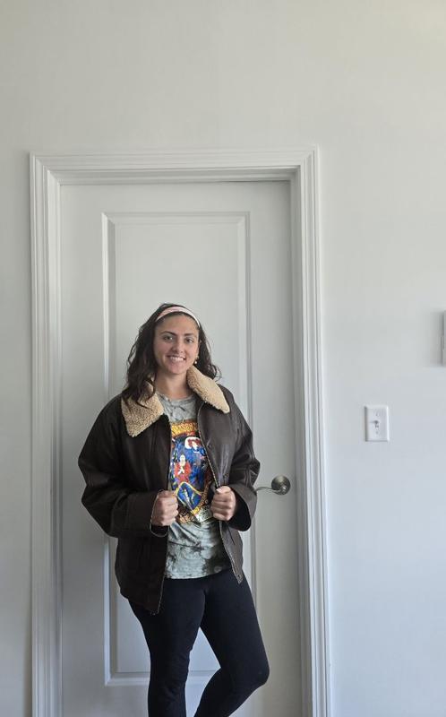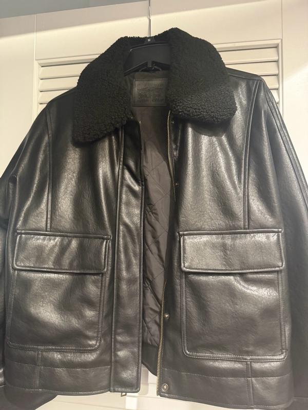 I love this Levi’s faux leather aviator jacket! it looks amazing in person and has such a classic, stylish vibe. The faux leather feels soft but sturdy, and the details like the stitching and lining make it look way more expensive than it actually is. It’s definitely well made and has a nice weight to it, so it doesn’t feel flimsy or cheap. I’ve gotten a ton of compliments already. The only thing I’d point out is the sizing. I usually wear a medium, and while this jacket fits, it runs a bit big. If you like a more fitted look, I’d recommend going down a size. On the other hand, the slightly oversized fit makes it super easy to layer over sweaters and hoodies, which is nice for colder weather. Overall, it’s a beautiful, versatile jacket that I’m really happy with, even with the looser fit.