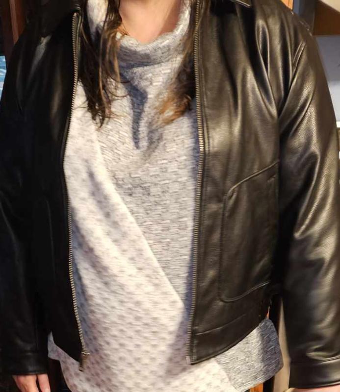 This women's faux leather retro bomber jacket is fantastic. I love the retro style, comfortable movement, and flex in the jacket. The jacket is so well made you can not tell that it's even faux leather, and I have gotten so many compliments while wearing it. Due to its classic style, you can dress it up or down! The jacket is also unbelievably warm!