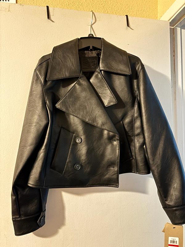 Oh my gosh I love this jacket so much. It fits perfectly and looks so cute on. It looks like real leather and feels like it too. Very high quality jacket. I can’t wait to wear it out on the town