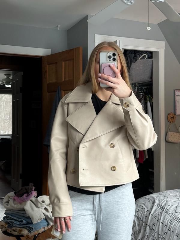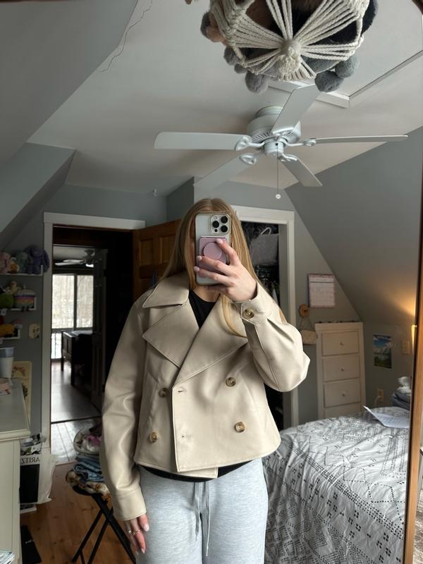 This is super cute! I love how the jacket is cropped and suede, the quality is amazing. The cream color is really pretty too, this would be good for work or going out at night. The size was perfect for me, I got an XS and it was still a little oversized but nothing too crazy. The suede smells fresh and amazing. I love the neck collar area, it’s very flattering with any type of shirt under it. I’d probably style this with a black shirt and some black jeans or black pants. The jacket is really cute and unique and overall is super flattering and good for multiple occasions. Definitely would need a layer in the winter, it’s warm but not insulated with any type of fur. Still kept me warm and look good too. You can wear it buttoned or unbuttoned.