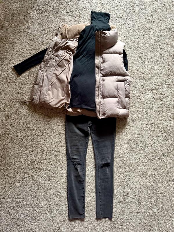 the vest itself is amazing and such incredible quality it’s so warm, and has many pockets, the color is very cute too, my only issue is the size as it kinda runs big