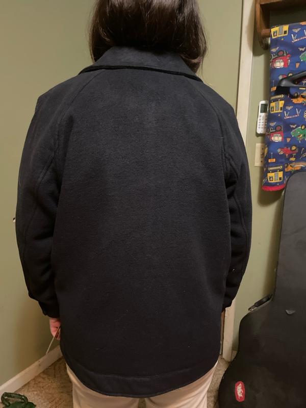 Great weight and fit. The size is on the big side but what you want in a jacket. Love the length I am 5ft7 Love this coat. The color and material are spot on. Love it