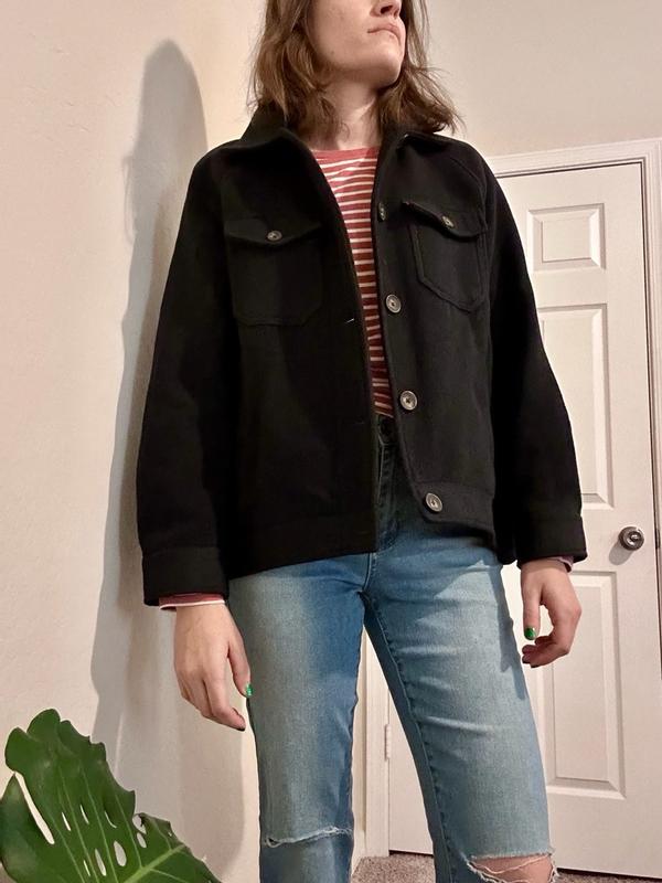 So this is a really heavy shacket and quality, I will start with that. Size wise it’s a miss for me. It’s very short in the arms, granted of this is a style you like then it’s slot on. It also runs very large and very boxes. I’m 5’11 and wearing a size large and it’s very big on me. However, if the boxy look is what you like then again; it’s a great fit. I think I’m just not young enough to pull it off, ha.