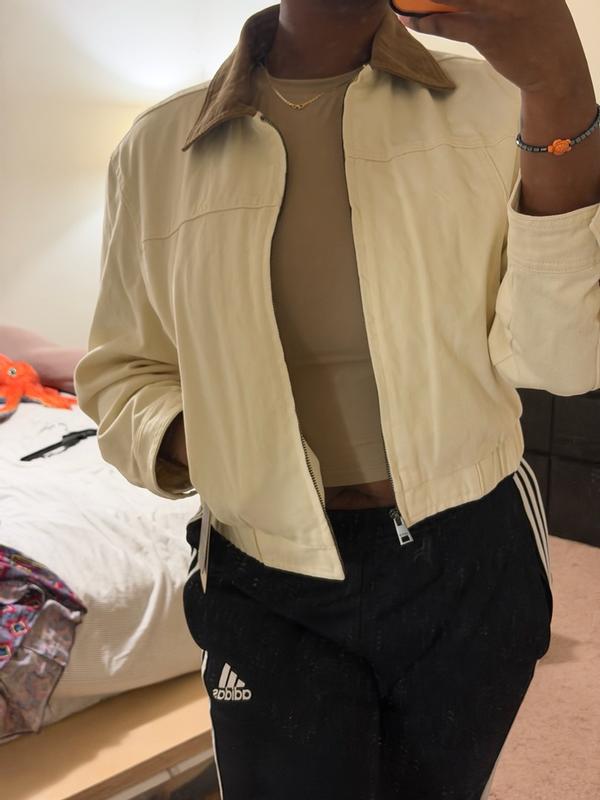 This bomber!!!! Omgggg 10/10 I freaking love it so much. The fit is perfect, I love the material and it can be styled either dressed up or down. I cannot wait until it starts feeling like spring so I can wear it with all my outfits.