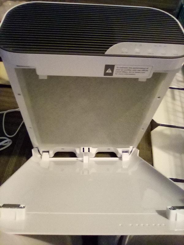 This is such a good little purifier that fits in my living room amazingly. It is not big and bulky, but has a big washable filter. It comes with a spare as well. The design is so clean, how I like it. It is currently in my living room on the floor, doing a great job. This is our new go-to air purifier.