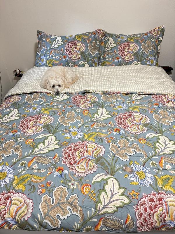 I ordered a new king comforter and shams after having used one from Lands End for years. The Levtex set is very pretty. The patterns on the front and back coordinate beautifully. I’ve fabric is a bit stiff, but I haven’t washed it yet.