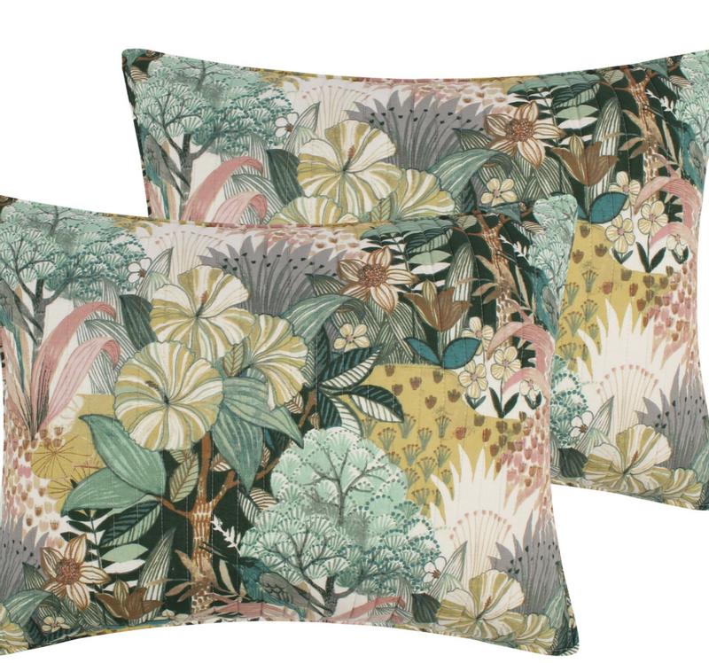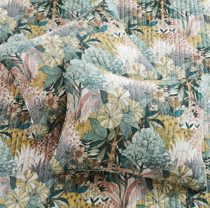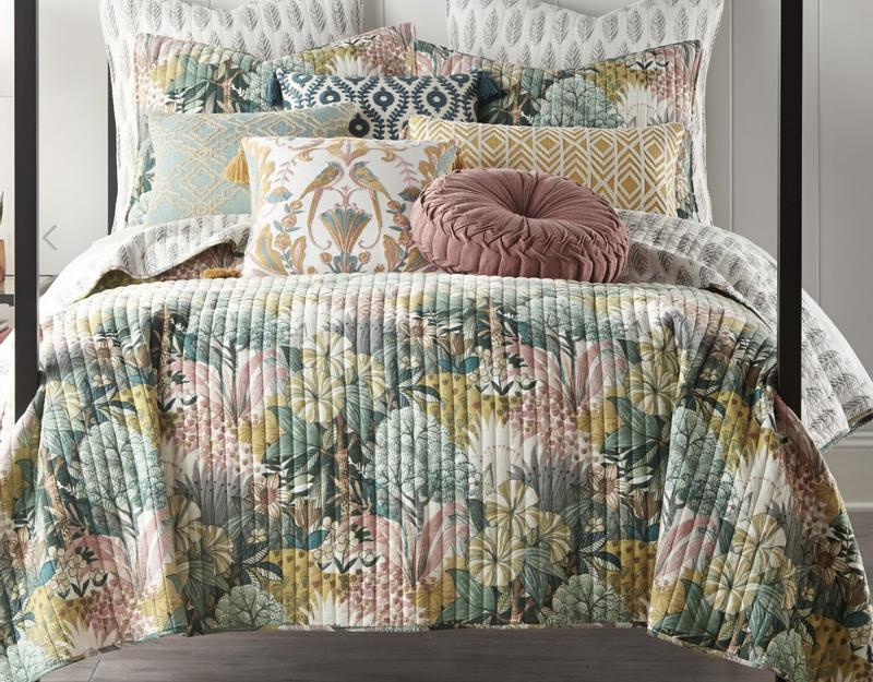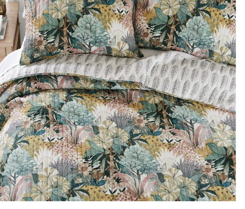 The Ashika reversible quilt set by Levtex home is inspired by strolling along a tropical flower path. Offered in green, blush, ochre, gray and cream, this quilt is machine washable. Enjoy it for years to come.