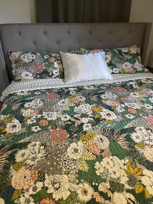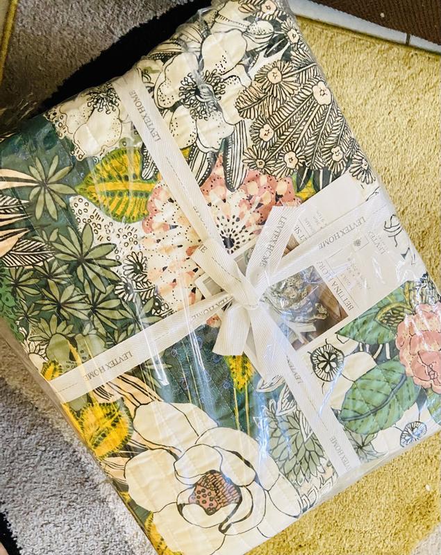 LOVE the colors and the print. It really brightens my room. This the second Levtex quilt I have purchased and the quality is great. My only complaint (reason for 4 stars instead of 5) is that this quilt is smaller than the last one. I have an extra deep mattress and it’s barely long enough in both width and length. My last one was wider and longer by a few inches. Levtex, PLEASE go back to the larger sizing. If it’s a matter of keeping costs down, I would rather pay a little more. If this quilt shrinks even a little, I won’t be able to use it.