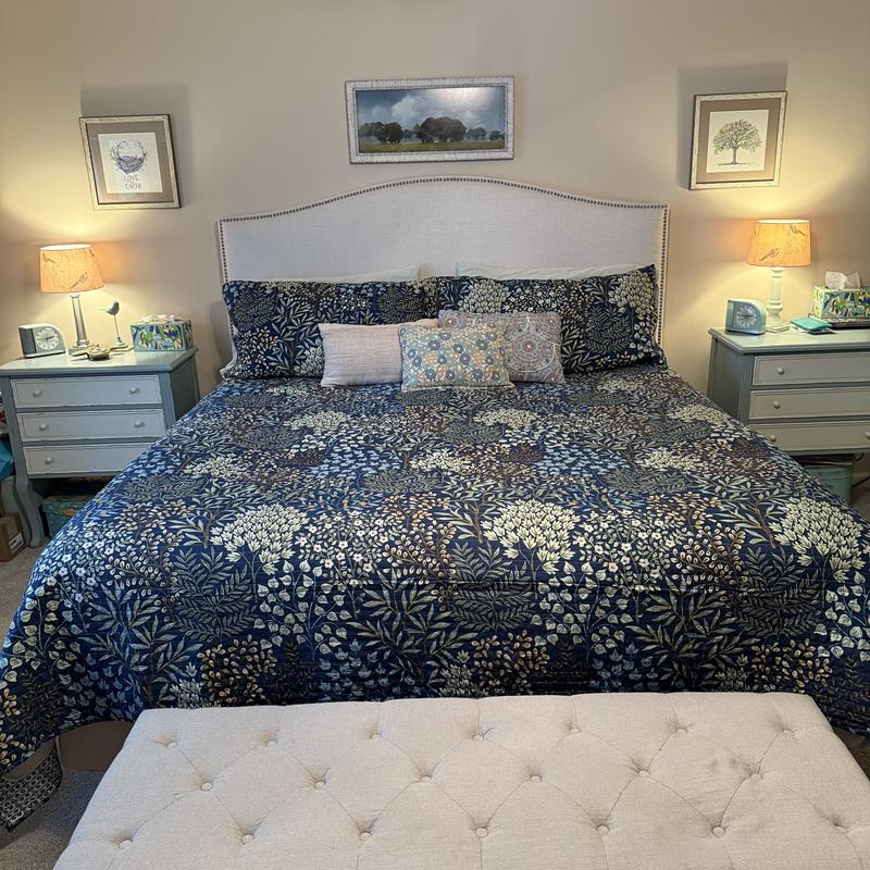 I am very pleased with this quilt. I wanted a pattern but not overly floral. I like that it is 100% cotton and reversible.