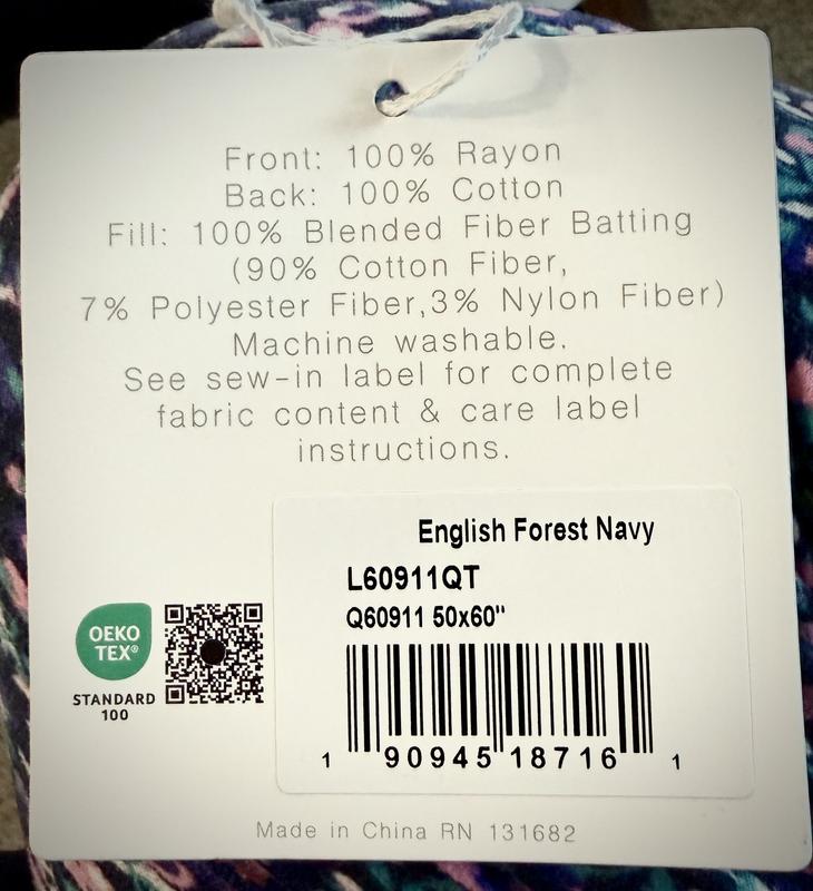 English Forest Navy 50x60 quilt NOT 100% COTTON