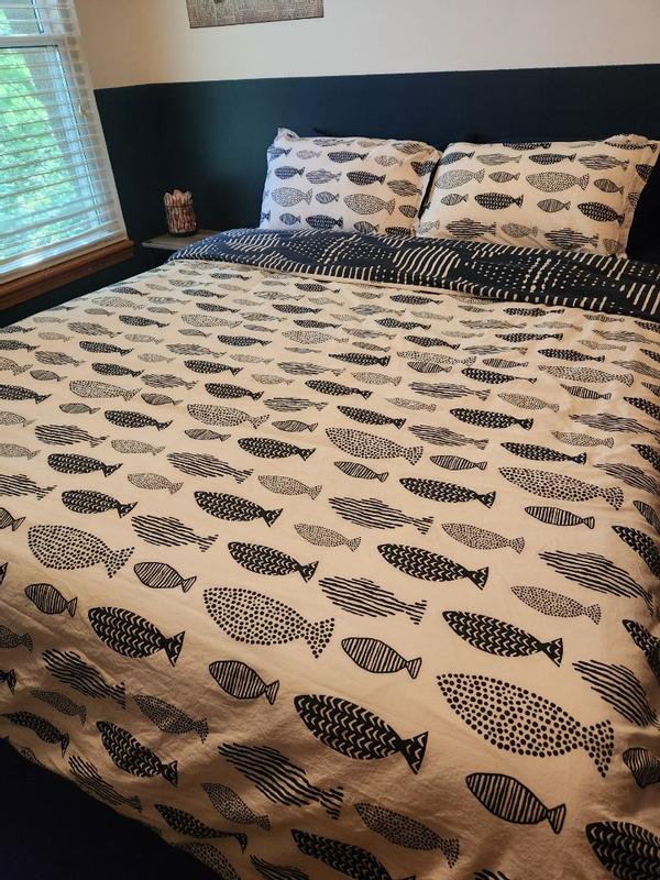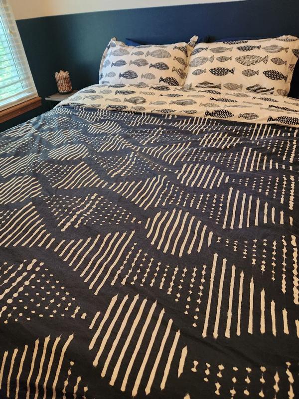 I absolutely love the pattern and color scheme of this duvet cover and pillow covers. It’s perfect for the lake house. The quality is so nice and I can tell it will hold up after many washes.